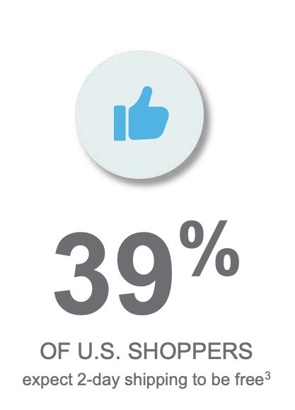Now more than 67% of U.S. consumers expect same-, next- or two day delivery of their ecommerce orders. [4] What they don’t expect is to pay for faster shipping; a Deloitte survey of ecommerce shoppers showed most consumers would pay only a minimal amount to get their orders faster. [5] In fact, studies show that 39% of US shoppers expect 2-day shipping to be free and 29% have backed out of a purchase because 2-day shipping wasn’t free. [6]